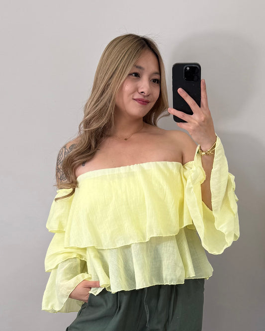 Off-Shoulder Volant-Bluse BREEZY ROMANCE in gelb