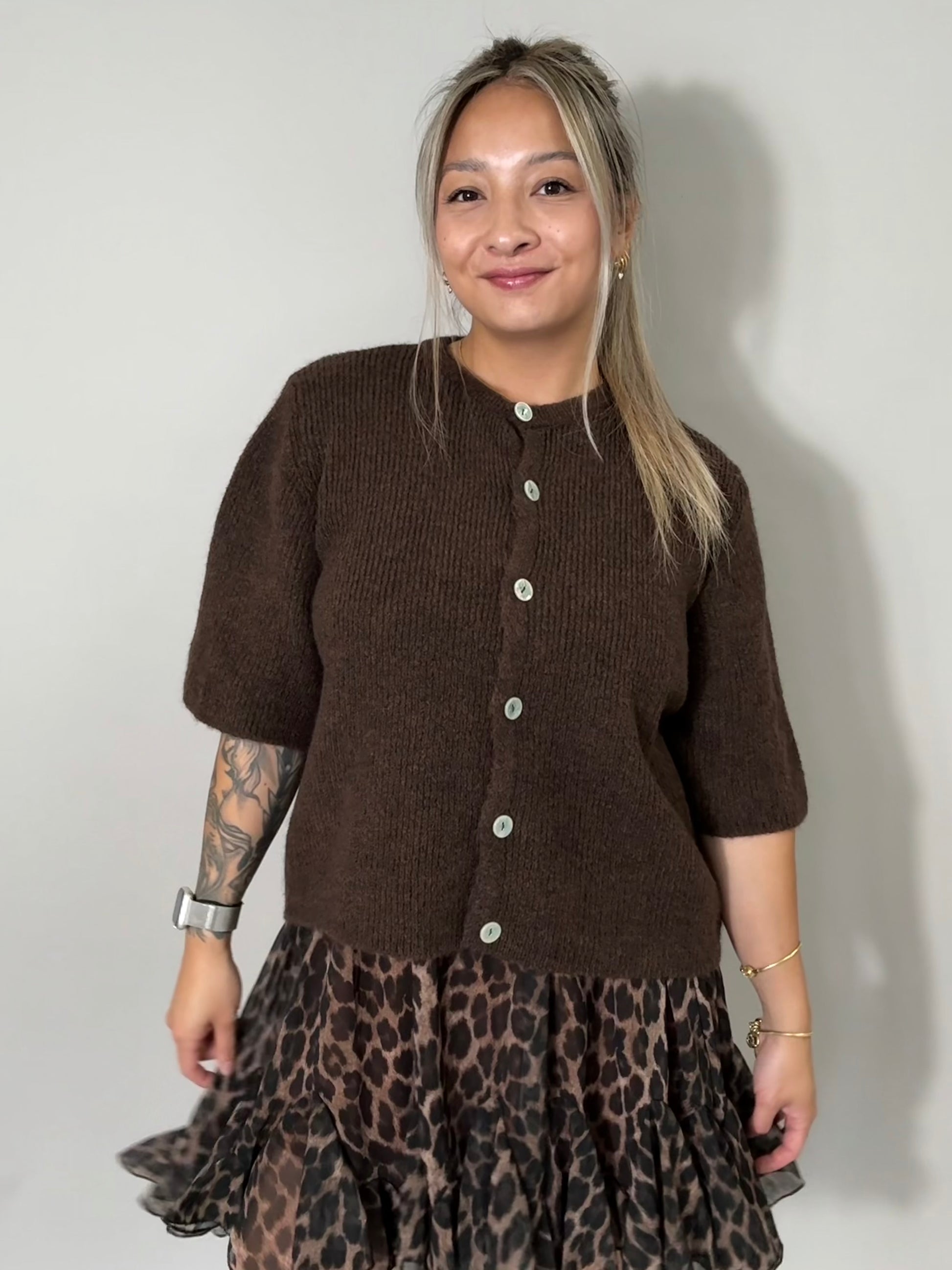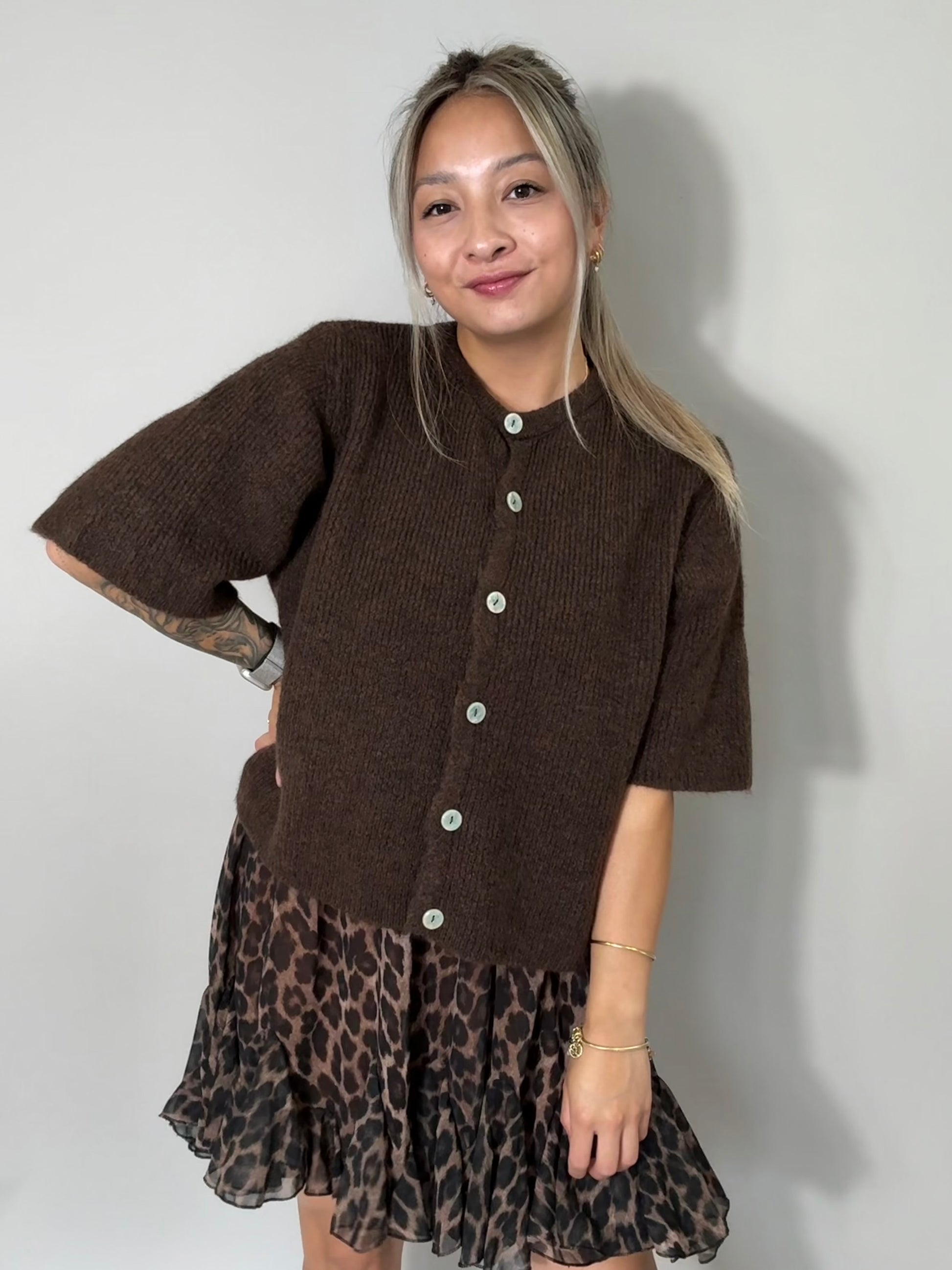 Cardigan - Schokobraun Kurzarm