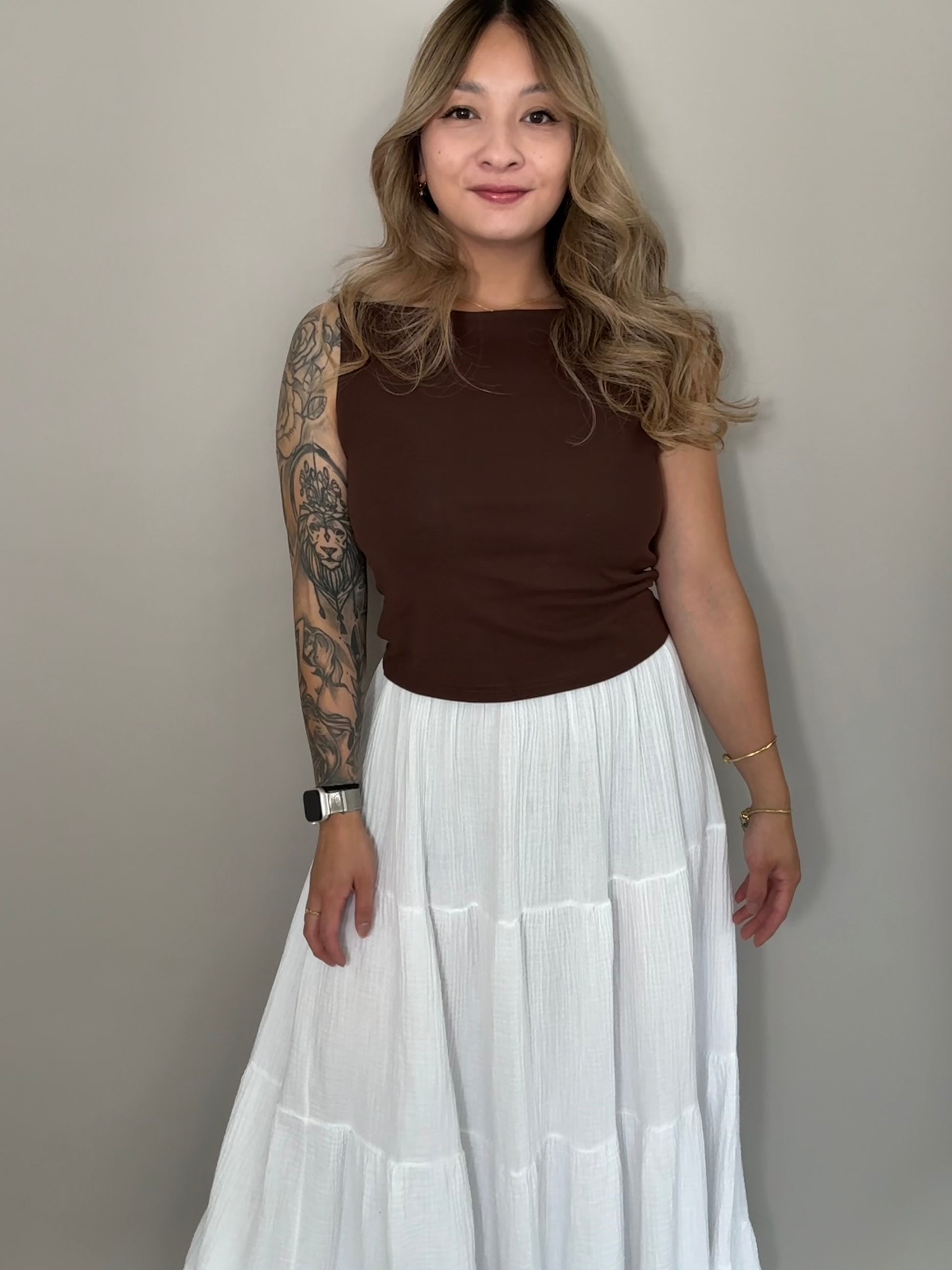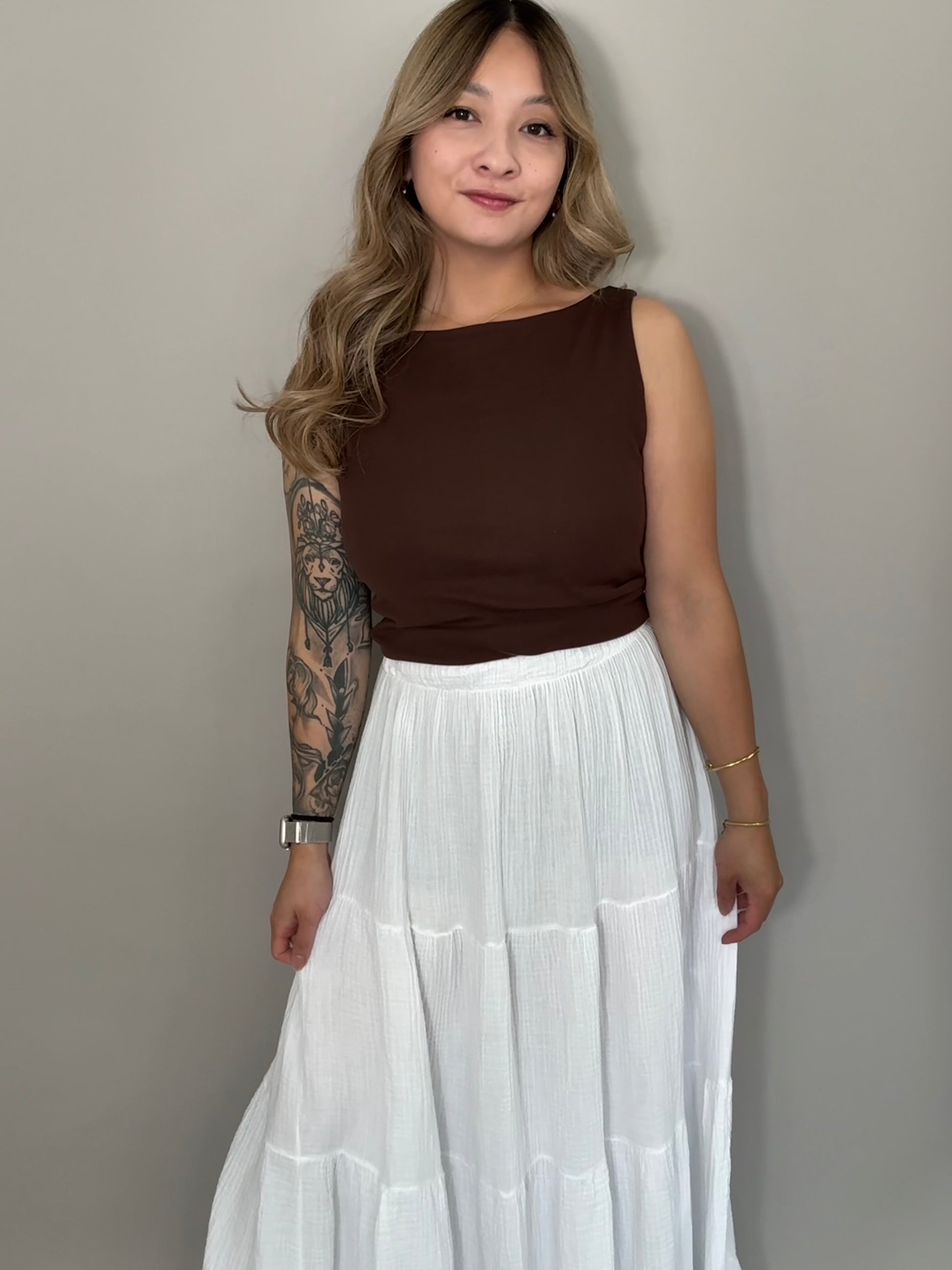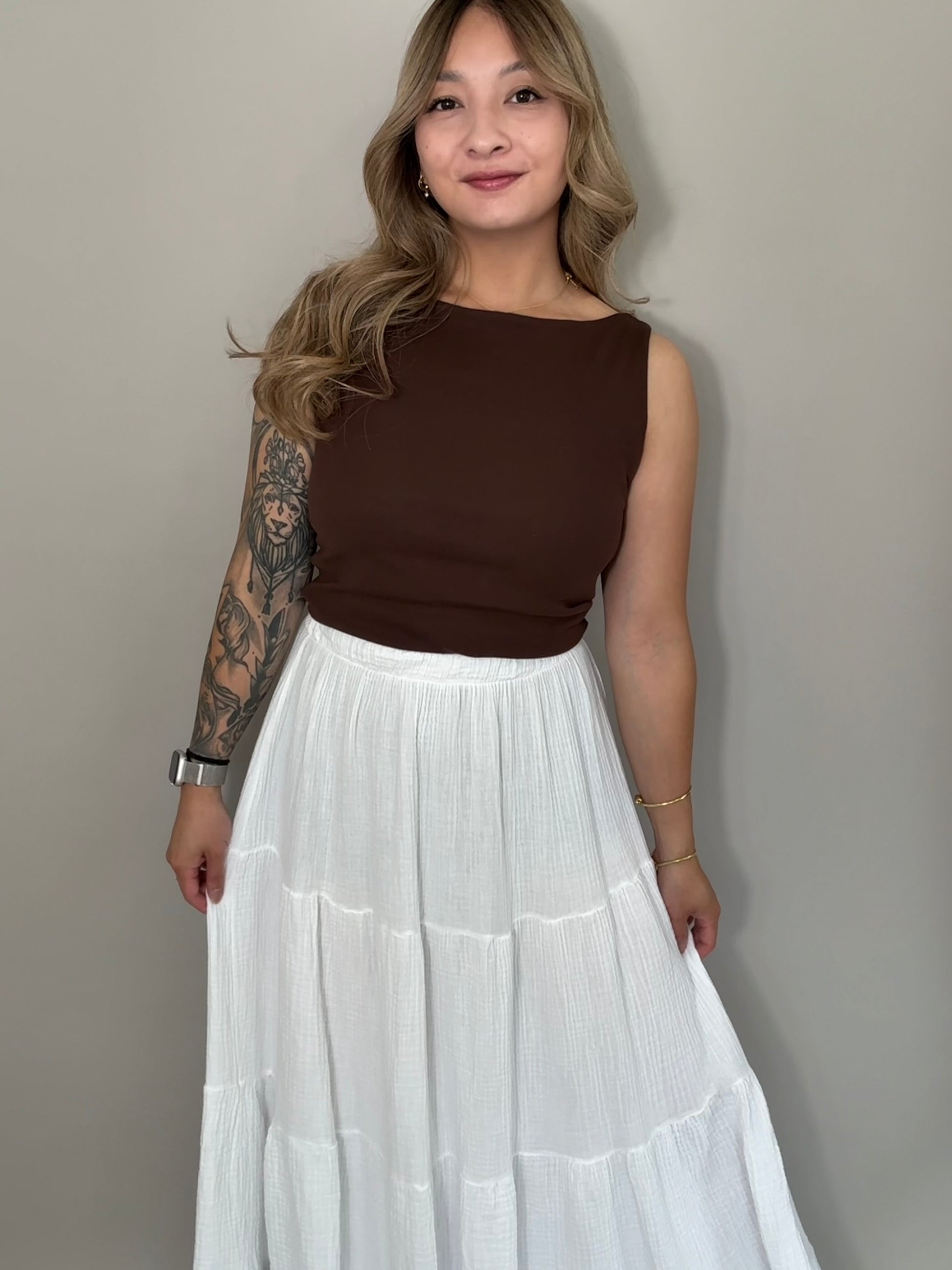 - langer Musselin Rock in weiß