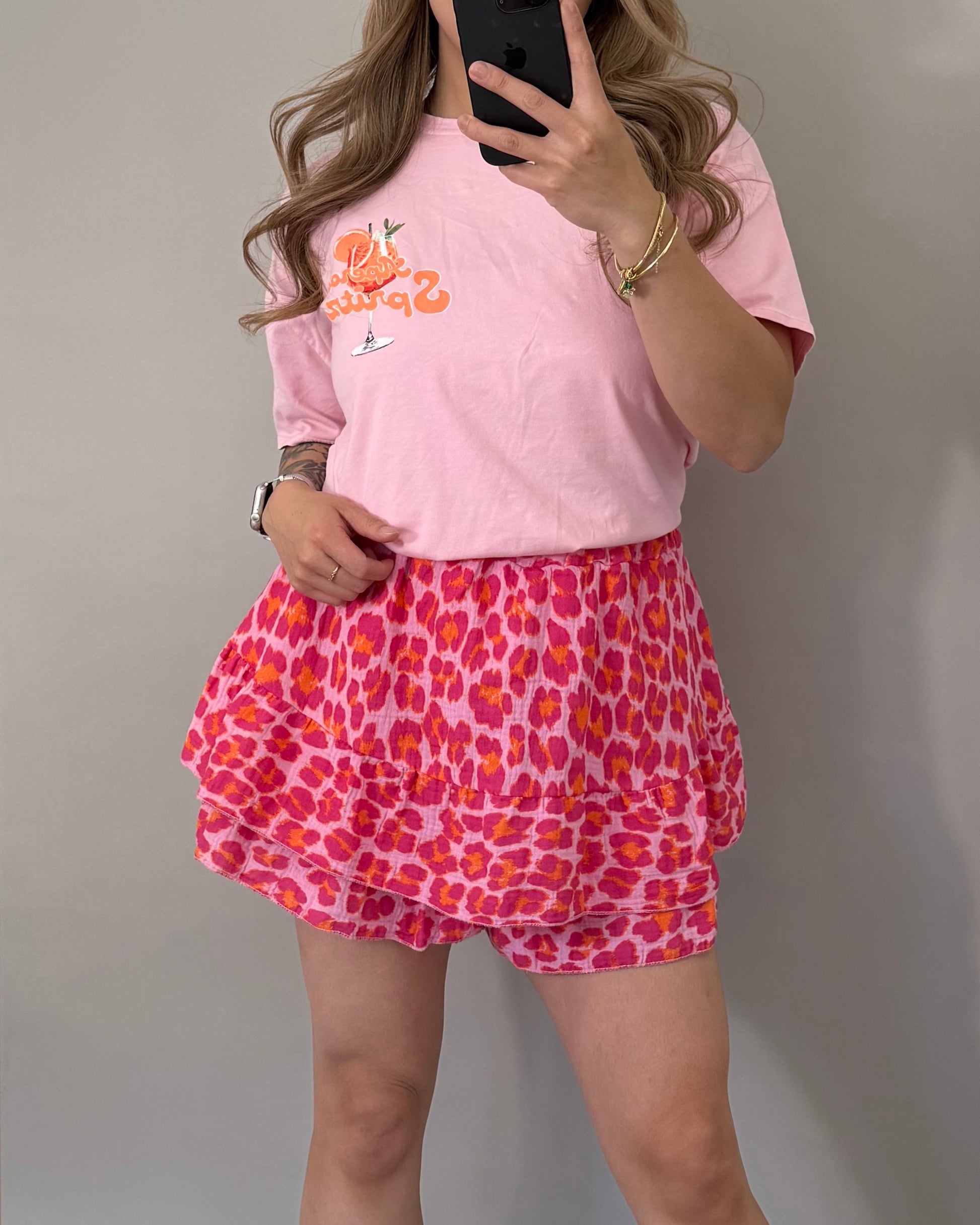 Musselin Skort in pinkem Leoprint