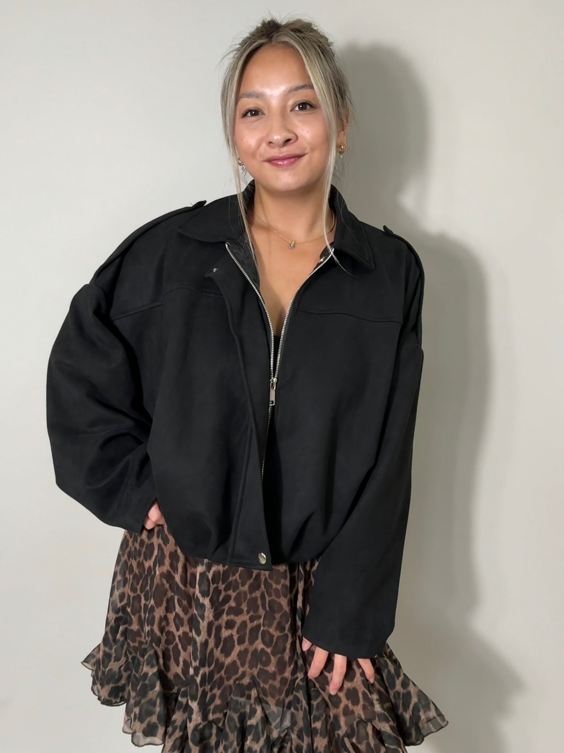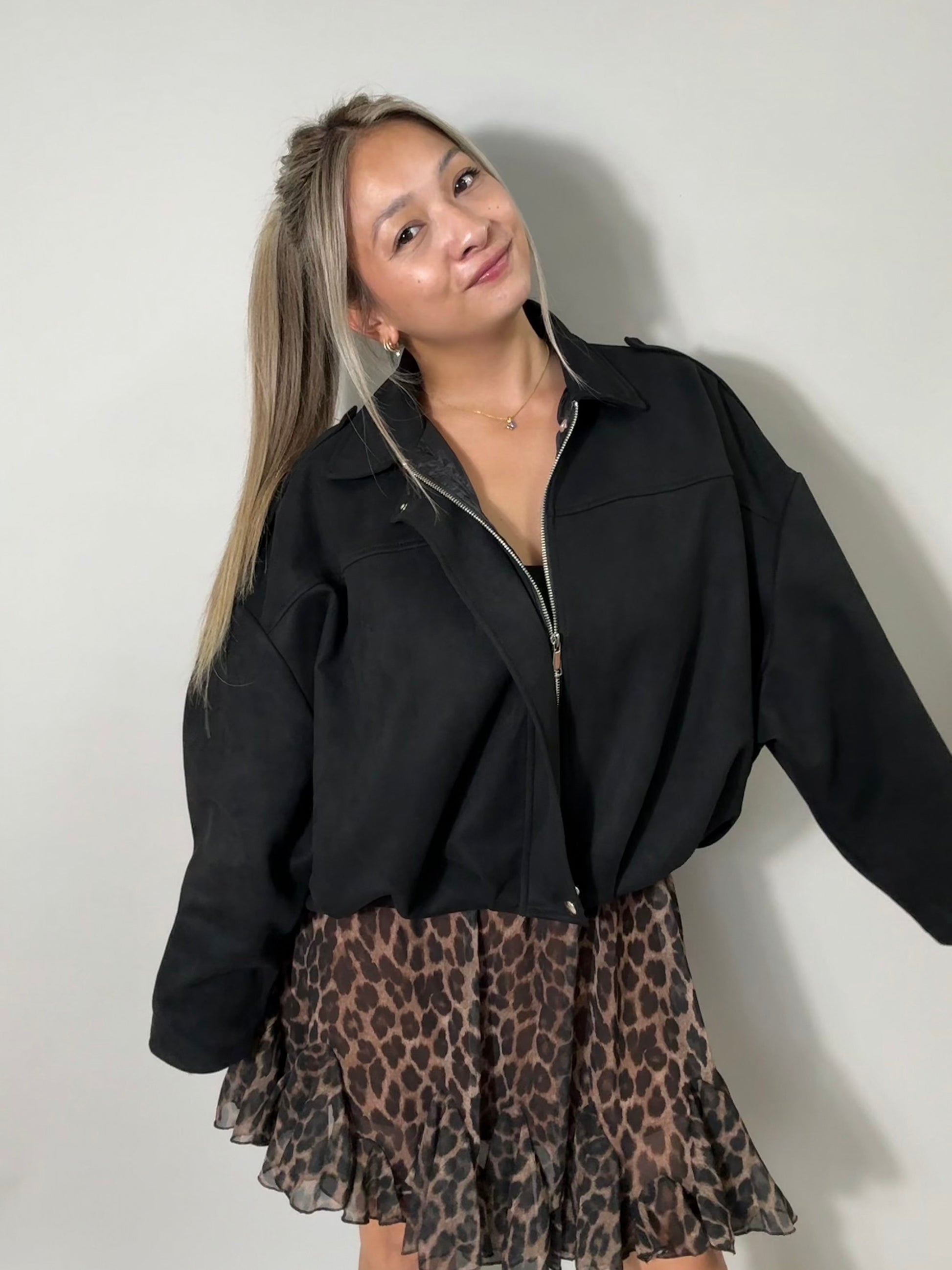 Übergangsjacke - Wildlederoptik - schwarz